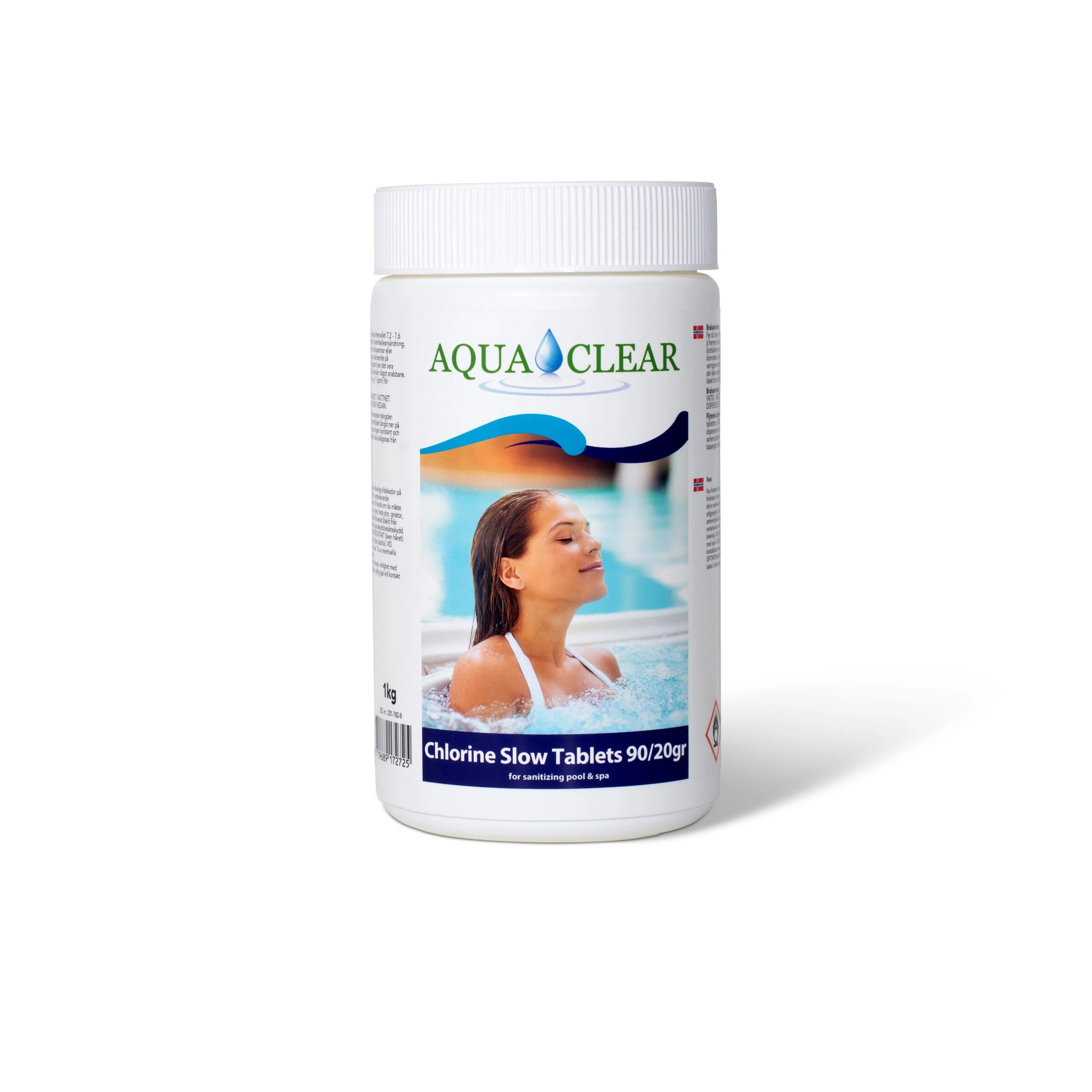 Klor Tabs 20g brukes for langsiktig desinfeksjon av vannet. Kontroller pH-verdien av vannet med et teststrips, og justere om nødvendig. PH-verdien bør alltid ligge mellom 7,0-7,4, og klor bør være mellom 1,0 og 3,0 mg / l (ppm).