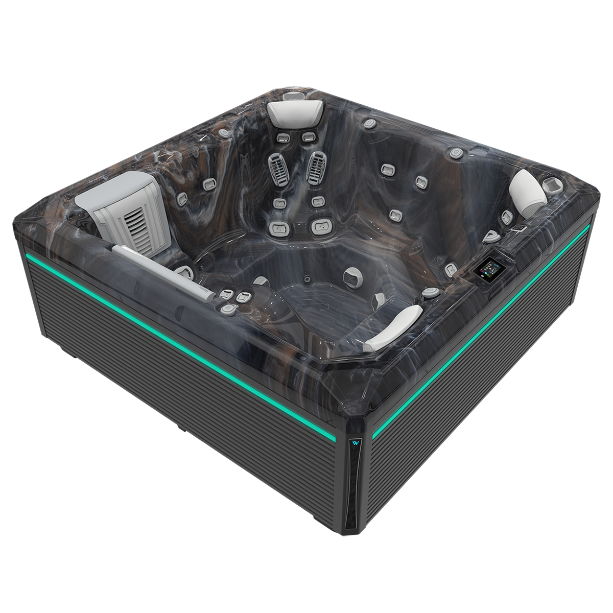De fem setene og den ene hvilestolen i vårt Wellis Atlas Life boblebad gir en uforglemmelig badeopplevelse for 6 personer samtidig. Den unike massasjeopplevelsen forsterkes av de perfekt plasserte infinity-dysene, 4 i tallet. WOW spa-system – elektronisk vann med en avledende pulsarfunksjon, det gir et perfekt forbruk og en massasjeopplevelse som vi aldri har opplevd før.