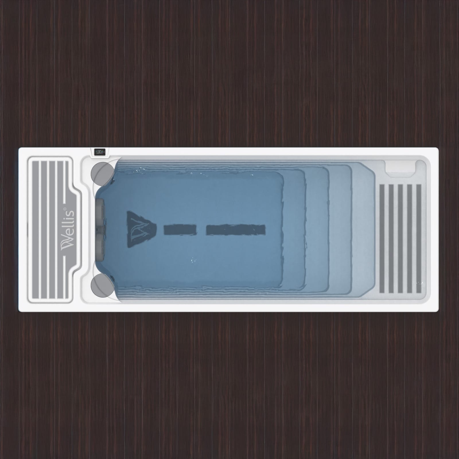 Med sine dimensjoner på 6 x 2,35 meter er bassenget designet for maksimal komfort og funksjonalitet. Det finnes solsenger i begge ender, hvorav den ene er plassert 10 cm under vannoverflaten – det perfekte stedet for avslapning.