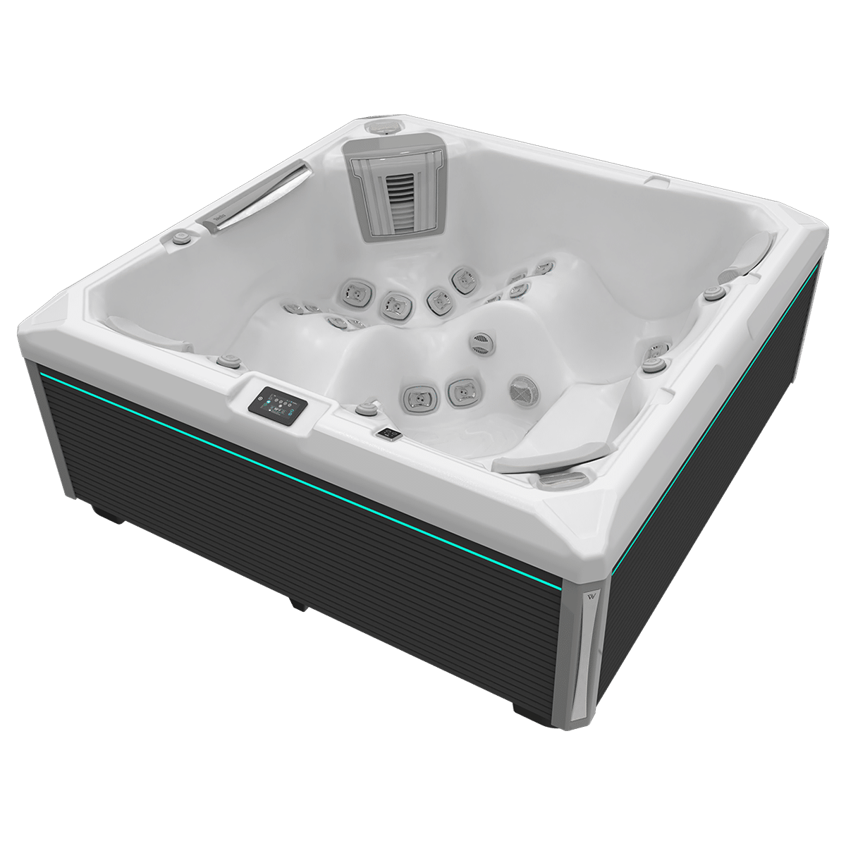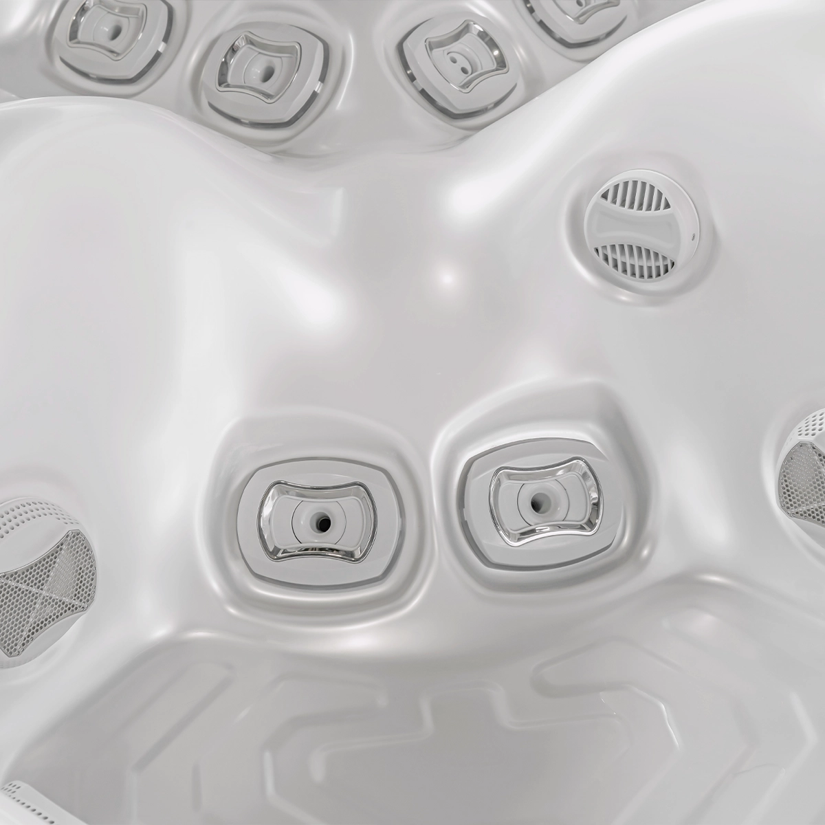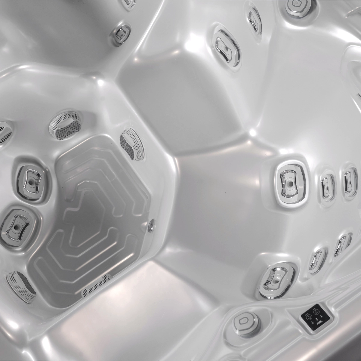 Essential-versjonen inkluderer det eksklusive Spot Color Therapy-systemet med RGB-punktbelysning, som gir en unik lysbehandling for ro og velvære. Det ergonomiske designet og de komfortable setene sørger for maksimal sittekomfort under hvert bad.