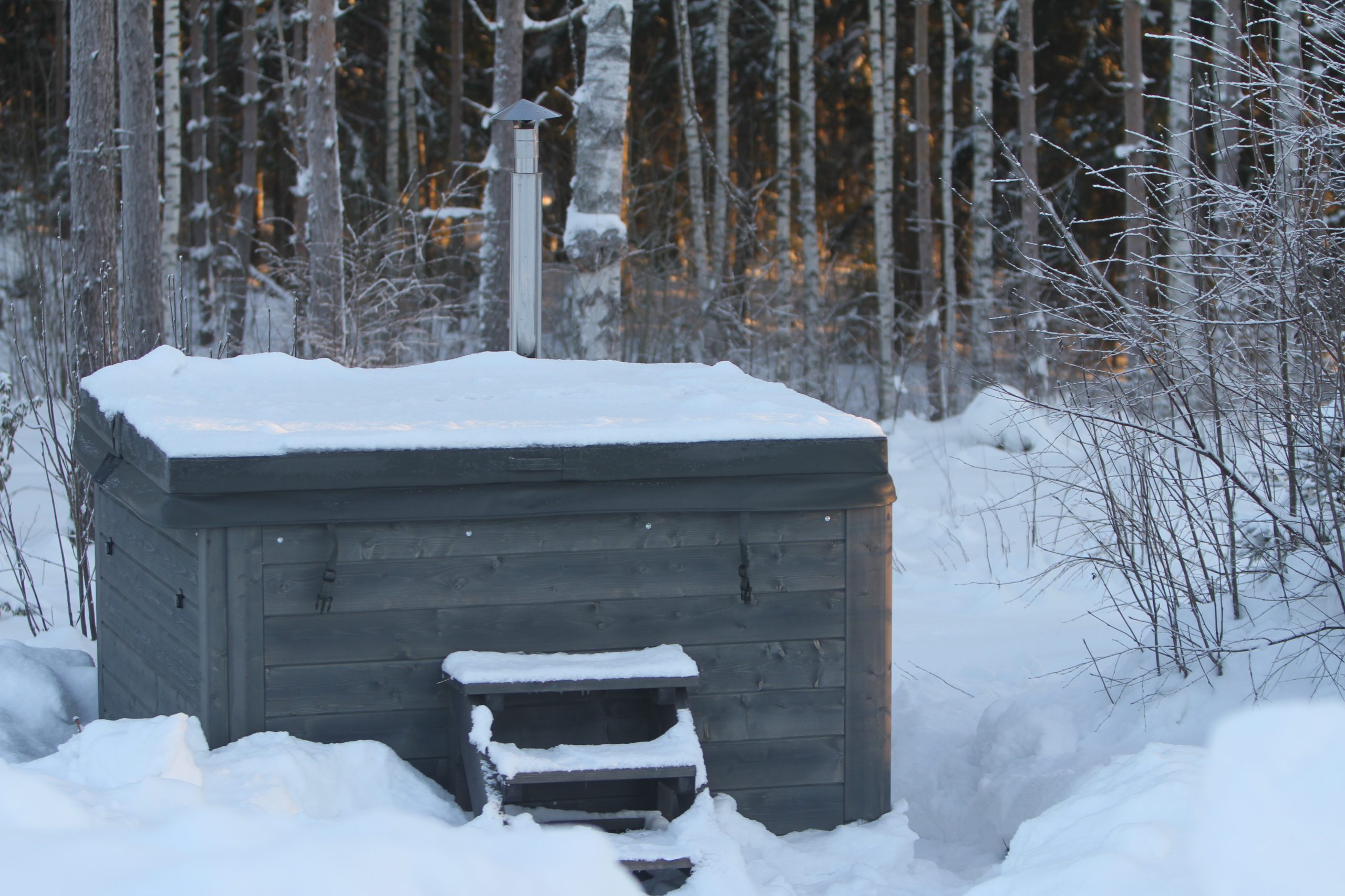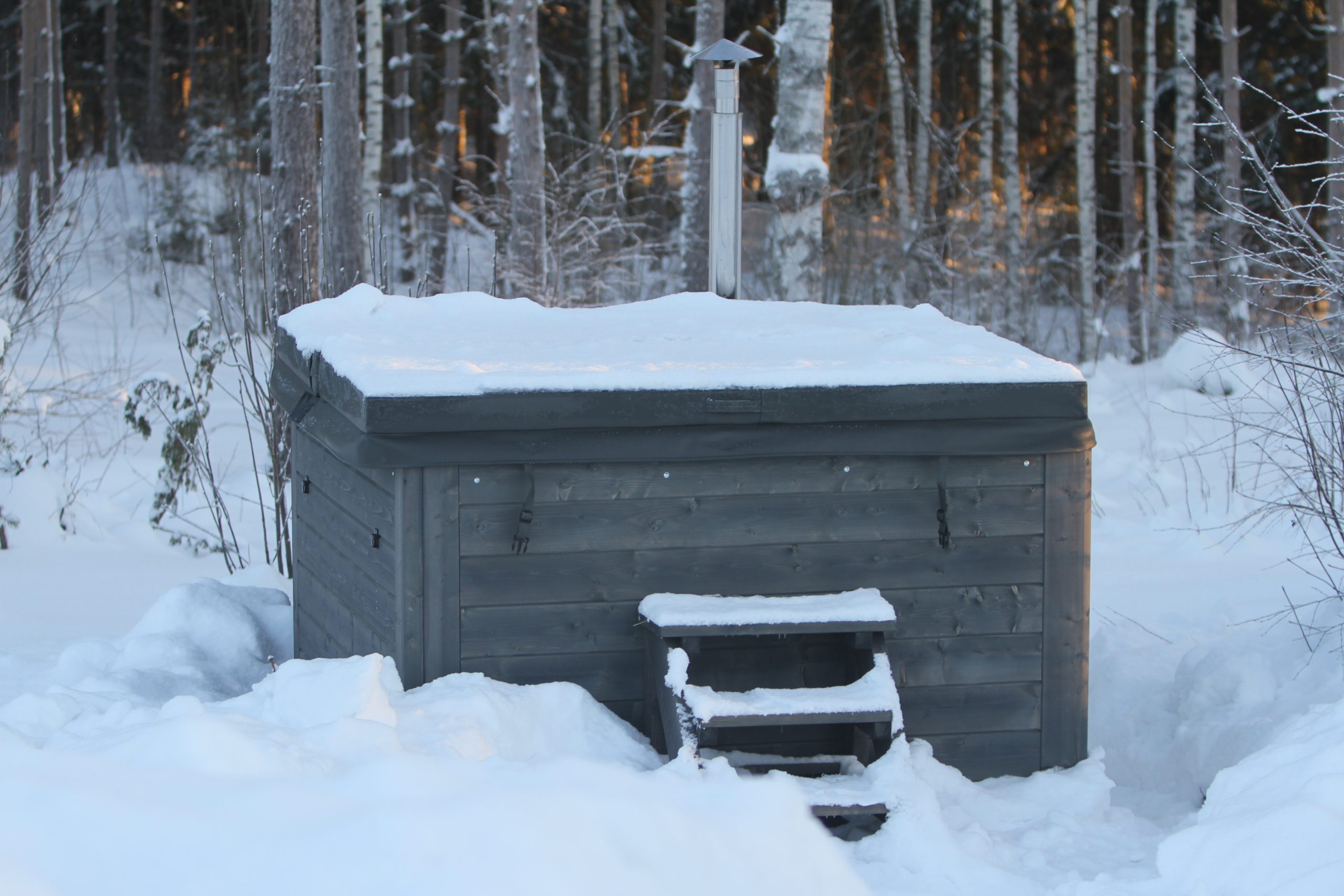 Rexener Aurora er en premium badestamp utviklet for nordiske forhold. Her får du en komplett løsning inkludert trapp og isolert lokk, slik at badet er klart til bruk med en gang det er levert.