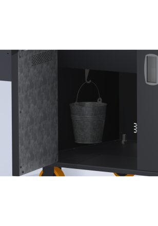 Munnstykket kan flyttes etter behov, og grillen leveres med 2 oppsamlingsbøtter for fett og avfall.